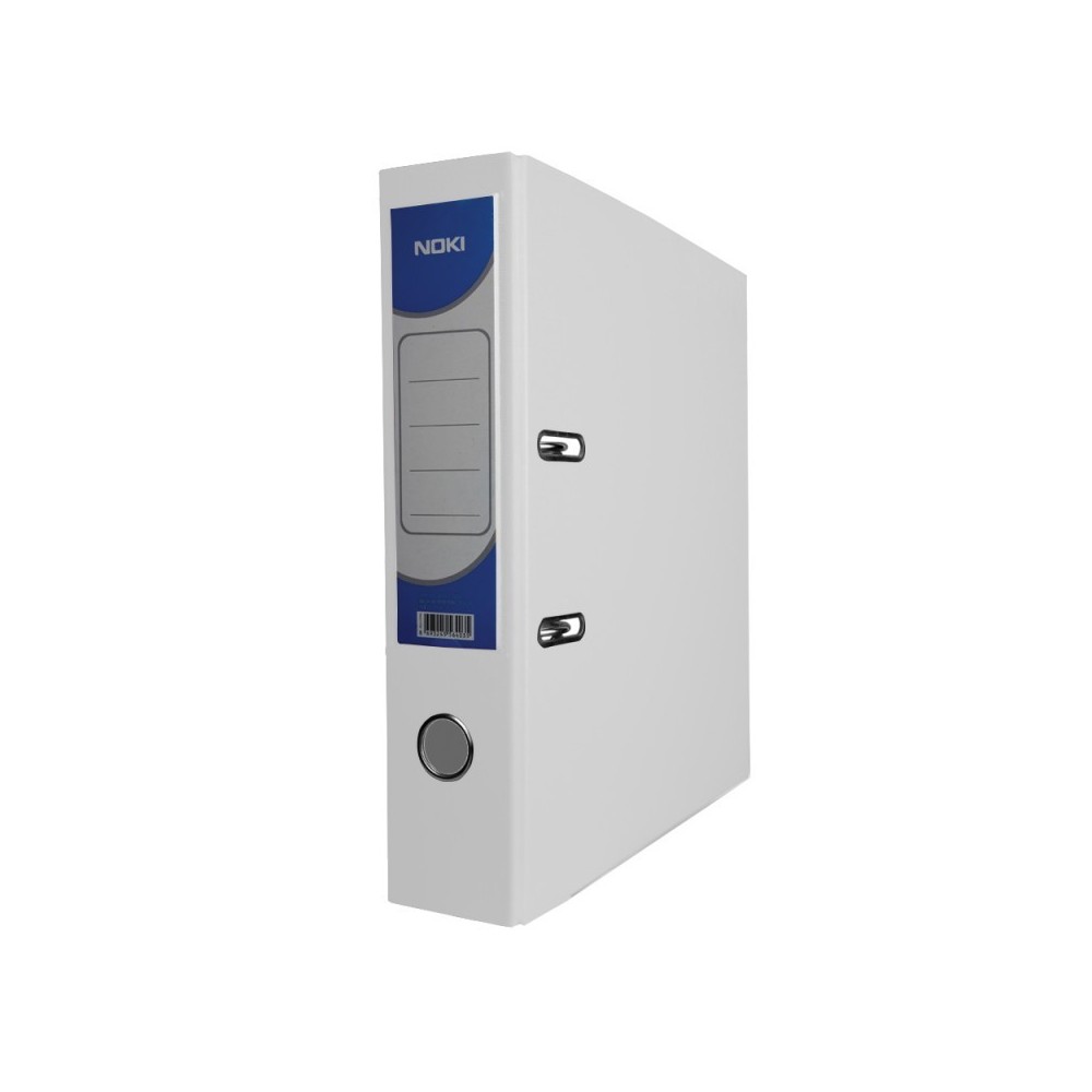 Plastifiat la exterior cu folie de polipropilena si cu interiorul din carton. Biblioraftul NOKI are mecanismul din metal inoxidabil si marginea este metalica pentru protejarea muchiilor. Prevazut cu port eticheta transparenta pe cotor. Caracteristici produs: Culoare: alb Format: A4 Latime: 5.0 cm Material: Plastifiat