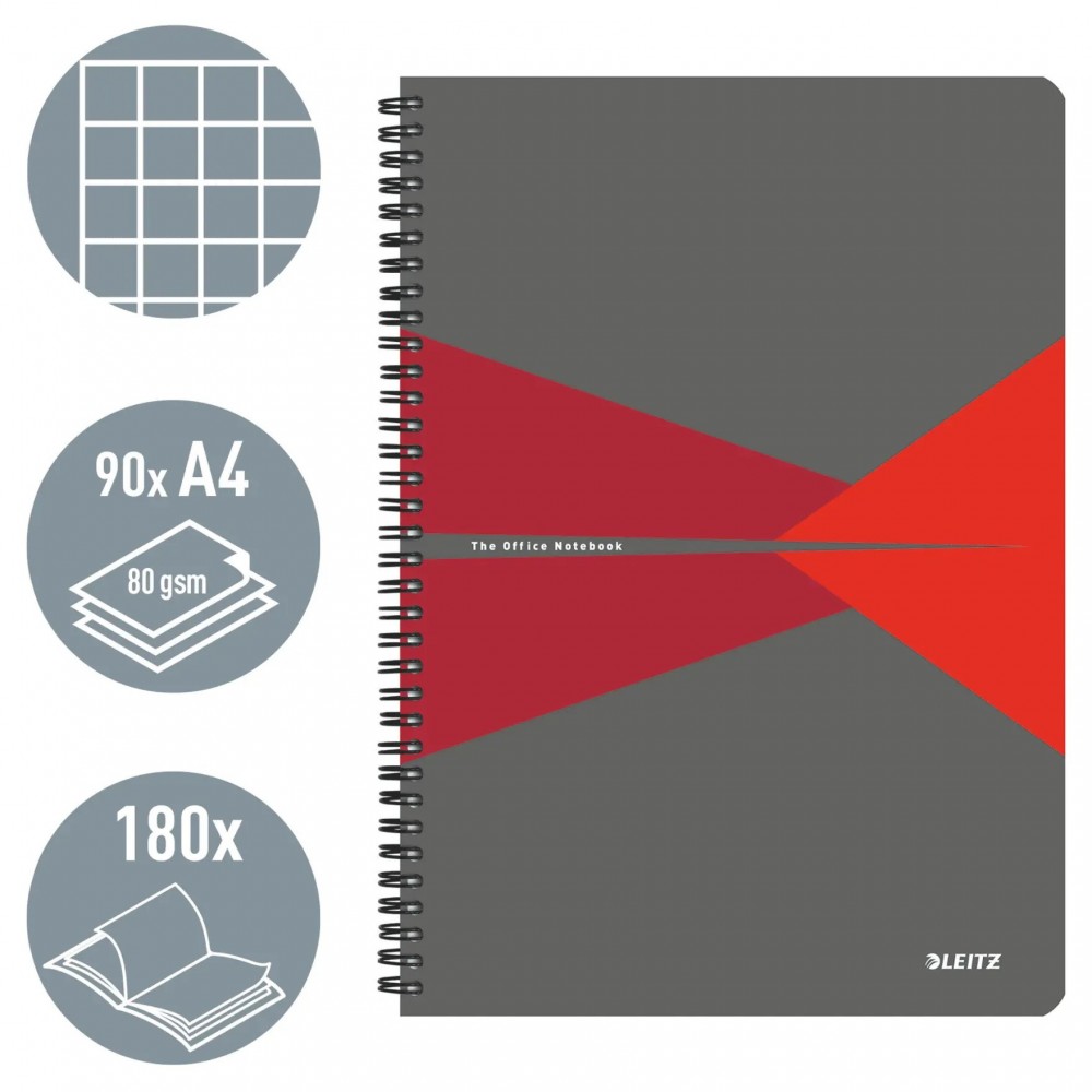 Caiet de birou LEITZ Office, PP, A4, cu spira, matematica - rosu