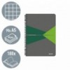 Coperta usoara si rezistenta din carton laminat. Legarea cu spira permite deschiderea la 360 de grade a caietului, iar pliat la jumatate poate fi folosit usor pentru a lua notite in timp ce esti in miscare. Hartie de cea mai buna calitate, opaca si cu suprafata fina, pentru o scriere lina, fara pete. Antet titlu si data, pentru o mai buna organizare a notitelor. Microperforatii pentru o rupere mai usoara. 180 de pagini / 90 de coli de hartie A4 certificata FSC de 80 g/mp.
