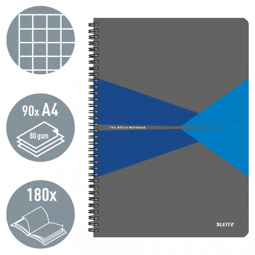 Caiet de birou LEITZ Office, PP, A4, cu spira, matematica - albastru