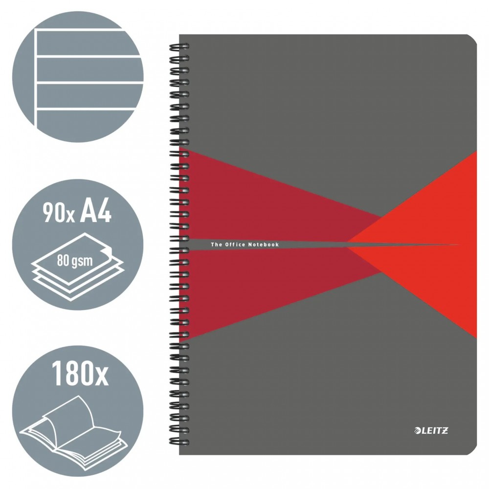 Caiet de birou LEITZ Office, PP, A4, cu spira, dictando - rosu