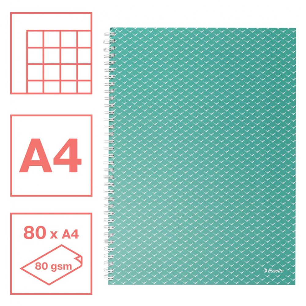 Caiet de birou ESSELTE Colour Breeze, carton, A4, cu spira, 80 file, matematica - verde