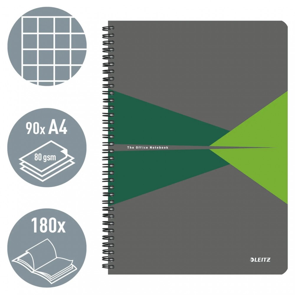 Caiet de birou LEITZ Office, PP, A4, cu spira, matematica - verde