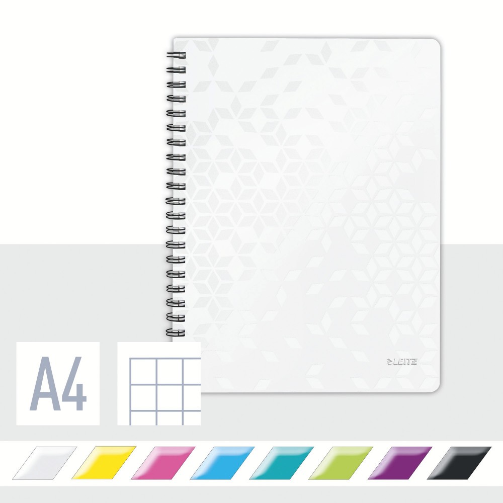 Caiet de birou LEITZ Wow, PP, A4, cu spira, matematica - alb