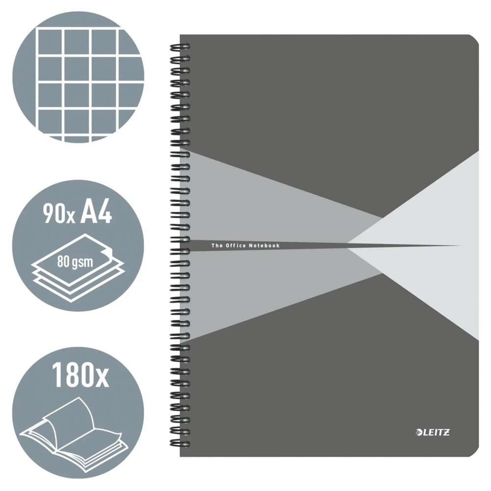 Caiet de birou LEITZ Office, A4, cu spira, matematica - gri