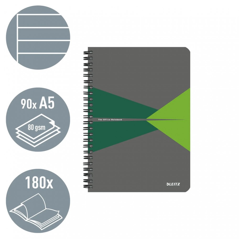 Caiet de birou LEITZ Office, A5, cu spira, dictando - verde