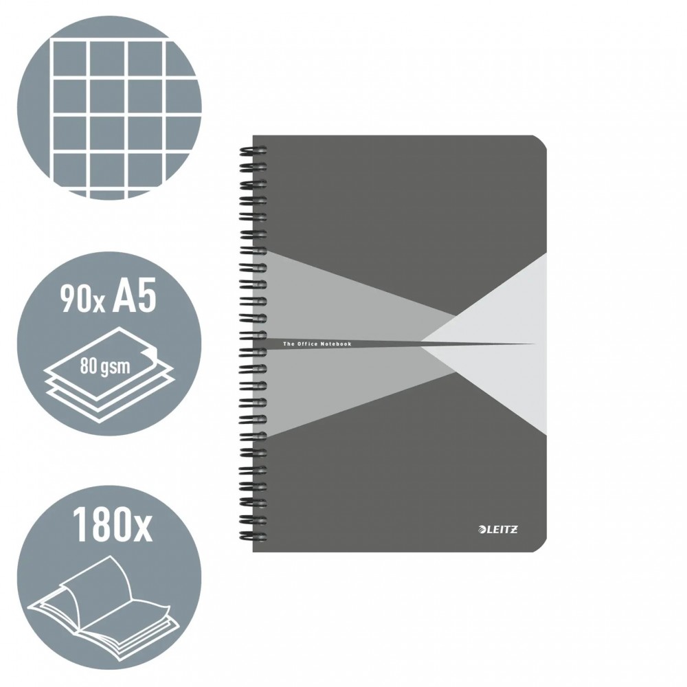 Caiet de birou LEITZ Office, PP, A5, cu spira, matematica - gri