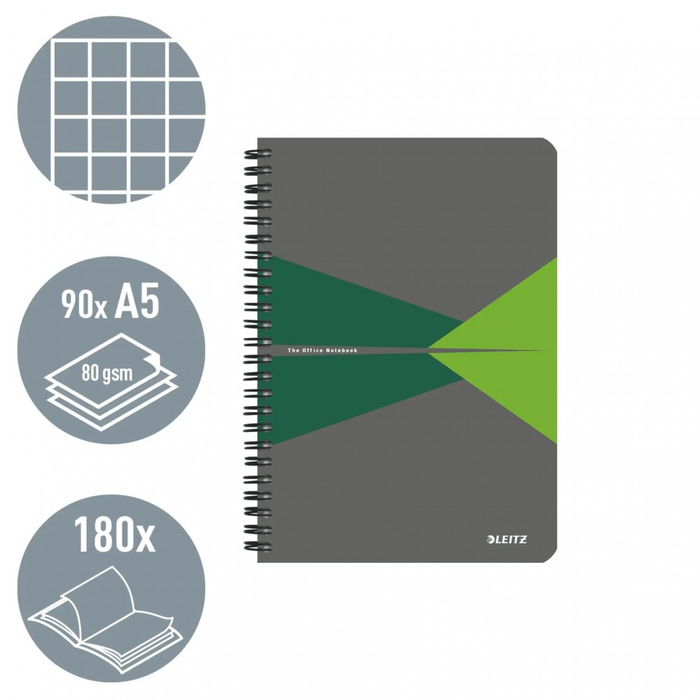 Caiet de birou LEITZ Office, PP, A5, cu spira, matematica - verde