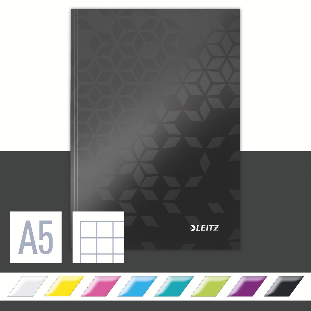 Caiet de birou LEITZ Wow, carton, A5, matematica - negru