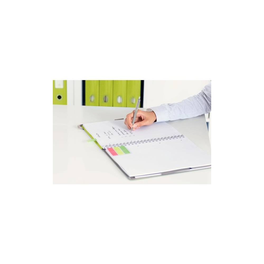 Coperta din PP (polipropilena) (PP) de inalta calitate in design modern Wow cu efect dual color. Dispune de spira, pentru a lua notite in miscare. Coperta creeaza un suport de scriere in timpul miscarii. Mapa cu 3 clape atasata pe coperta din spate, pentru stocarea temporara a documentelor. Suport pentru instrumentul de scris, pentru a avea mereu la indemana un stilou sau un pix. Cu rupere usoara a foilor, datorita marginii microperforate. 3 separatoare repozitionabile pentru organizarea flexibila a notitelor. Suport pentru instrumentul de scris, pentru a avea mereu la indemana un stilou sau un pix. 3 seturi de indecsi adezivi color, atasate pe coperta din spate, ideale pentru a marca continutul important. Cu rupere usoara a foilor, datorita marginii microperforate. Inchidere cu banda elastica, pentru transportul in siguranta al documentelor.