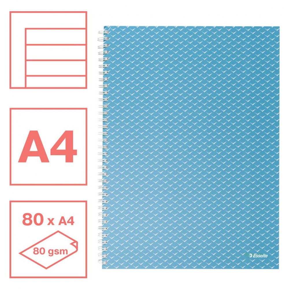 Caiet de birou ESSELTE Colour Breeze, carton, A4, cu spira, 80 file, dictando - albastru