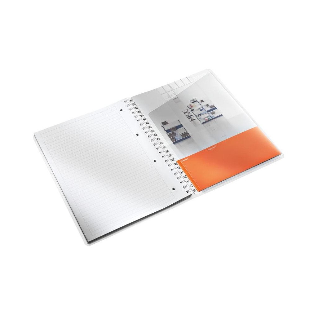 Caiet de birou cu coperta din Poilipropilena (PP) de inalta calitate, in design modern Wow, cu efect dual color. Cu buzunar suplimentar pentru diverse documente si accesorii. Dotat cu rigla gradata ce poate fi folosita si ca semn de pagina. Incape in mapa Jumbo Leitz Wow, Mapa tip Proiect Leitz Wow si in suportul vertical sau tavitele pentru birou. Legare rezistenta cu spira, pentru a facilita rasfoirea si pentru o folosire de durata. Coli microperforate care se rup usor.