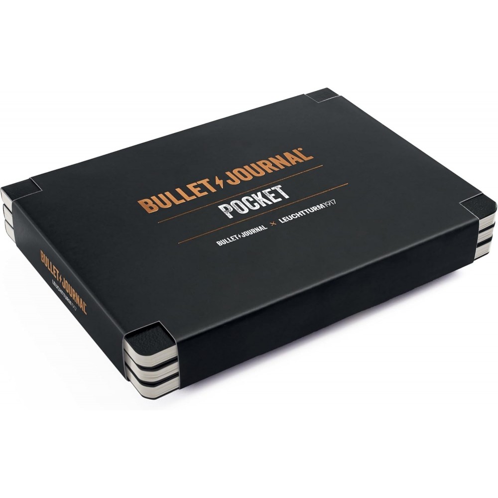 Set de 3 caiete de birou Leuchtturm cu liniatura punctata, editie de buzunar. Fiecare are 46 de pagini numerotate, cu grosimea hartiei de 80 g/mp . Caietul se potriveste in orice buzunar, este rapid la indemana oriunde v-ati afla, oferind totusi experienta completa de jurnal. Proiectat convenabil pentru a se potrivi oriunde, cu o coperta flexibila si pagini usoare, acest jurnal va va urma cu siguranta peste tot. Proiectat in detaliu pentru jurnalul zilnic: atunci cand este desfasurat, se transforma intr-o intreaga pagina A5 pentru a fi folosita pe verticala. Liniile punctate sunt concepute astfel incat maxim 31 de zile dintr-o luna sa poata fi enumerate vertical. Este prevazut cu un buzunar fiecare caiet avand cate o foaie cu stickere. Dimensiuni: 144 x 104 mm.