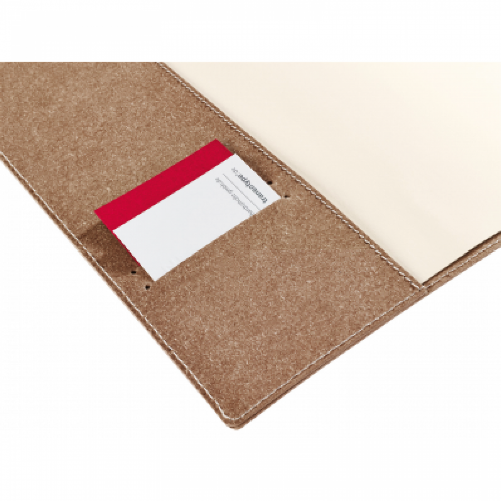 Caracteristici: Coperta pliabila din piele reciclata de vitel, cusuta manual. Carnetul din interior se poate schimba cu refill-ul potrivit pastrand coperta. Locas pentru stilou sau pix. Semn de carte. 135 pagini numerotate, disponibil cu foi veline, dictando sau matematica. Pagina speciala pentru cuprins. Ultimele 16 pagini sunt perforate, pe marginea paginilor este scala in cm si inch. 2 locasuri pentru carti de vizita. Dimensiuni: 14x21 cm