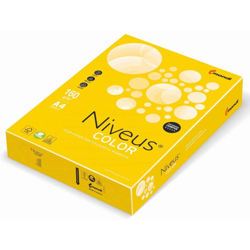Carton copiator A4, galben mustar intens, 160g/mp, 250 coli/top, IG50, NIVEUS