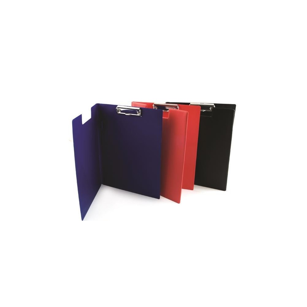 Clipboard dublu din PVC cu mecanism nichelat de prindere a hartiei, buzunar pe coperta interioara si suport pentru instrumentele de scris.