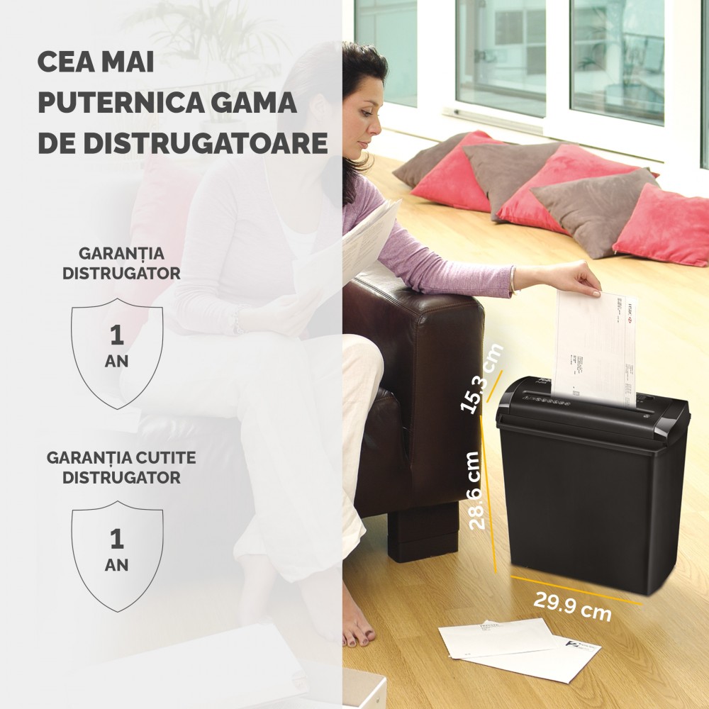 Distruge: hartie, carti de credit, agrafe, CD/DVD