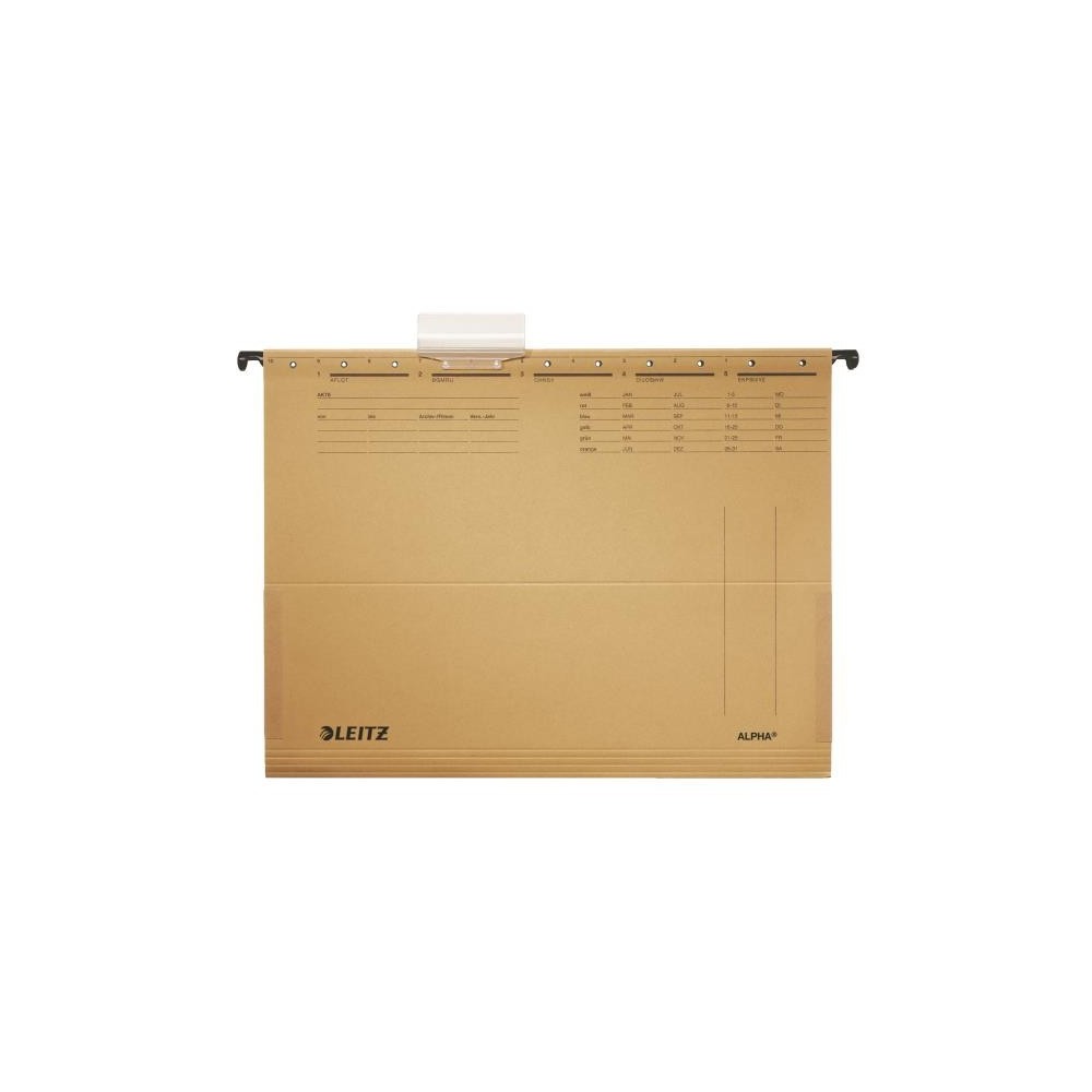 Dosar suspendabil de calitate cu baza V Buzunarele laterale previn caderea si pierderea documentelor Culori diverse si atractive, pentru arhivarea sistematica, dupa codul culorilor Suport de eticheta mare si rigid, fixat pe dosar, permite pana la 4 randuri de text Bare de metal rezistente si dure Buzunare laterale pentru a securiza documentele arhivate Fabricat din carton 100% reciclat, certificat Blue Angel