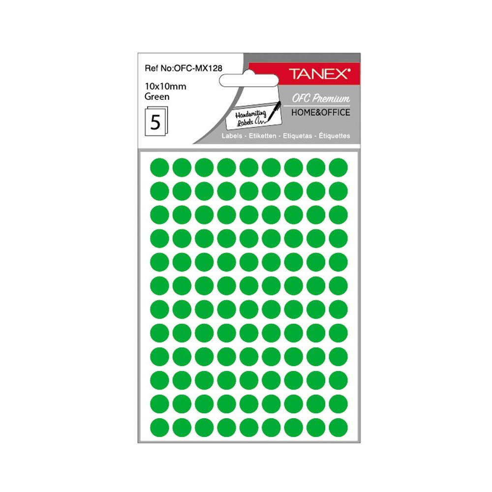 Diametru eticheta: 10 mm. Culoare: verde. Ambalare: 540 etichete/set (5 folii x 108 etichete/folie).