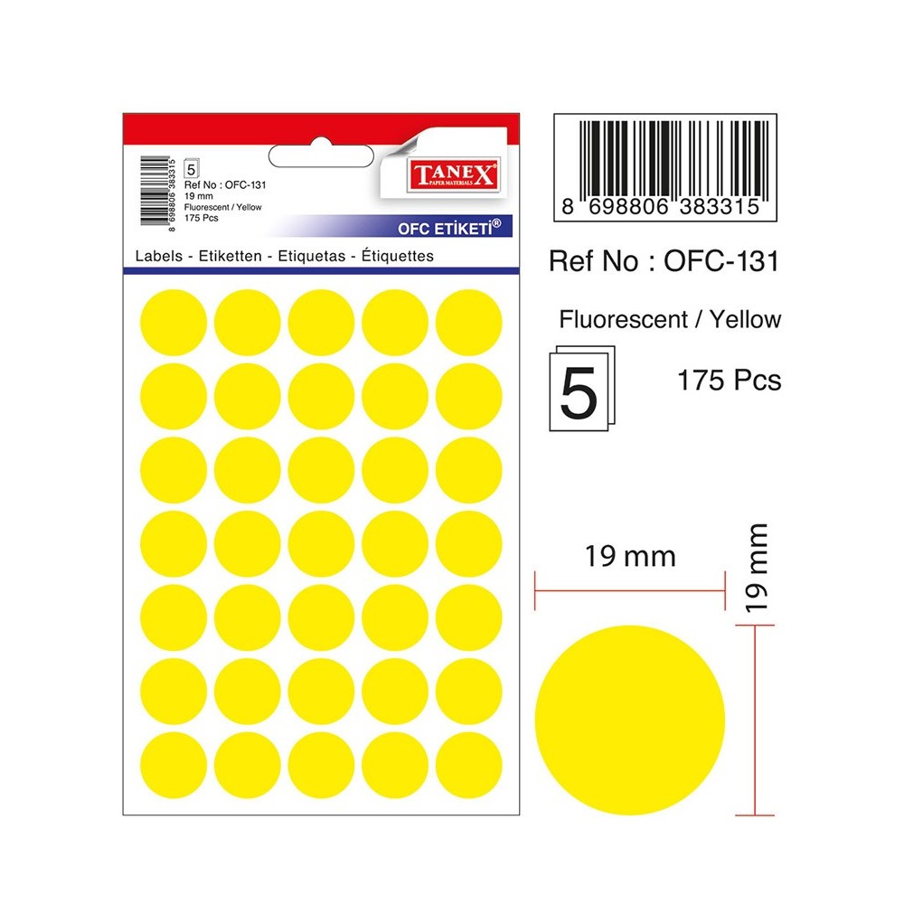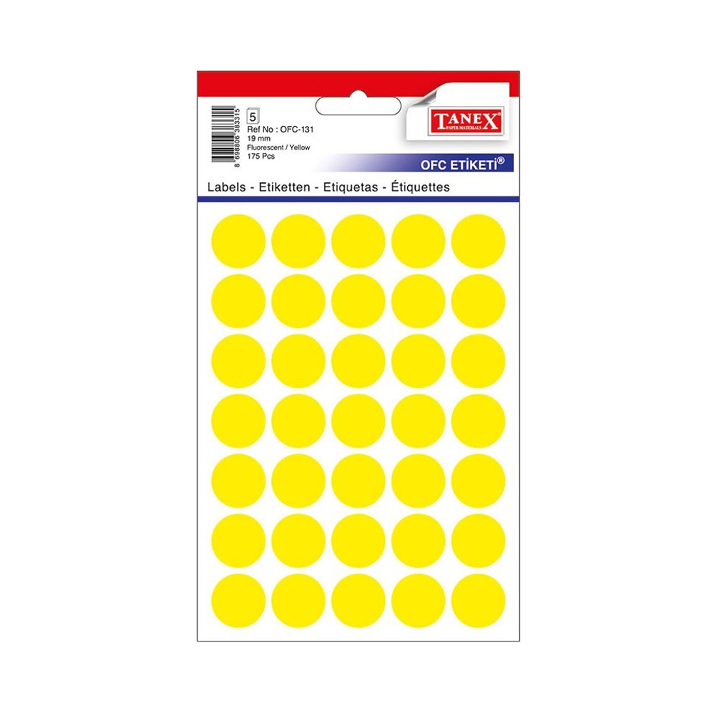 Diametru eticheta: 19 mm. Culoare: galben. Ambalare: 175 etichete/set (5 folii x 35 etichete/folie).