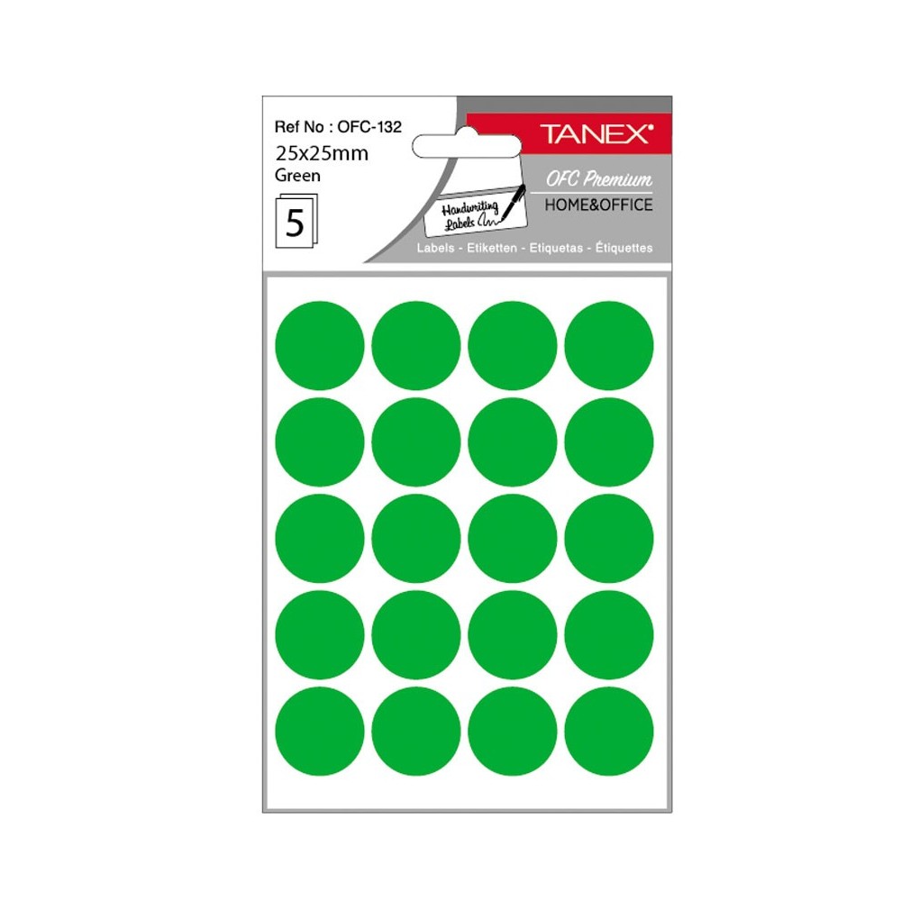 Diametru eticheta: 25 mm. Culoare: verde. Ambalare: 100 etichete/set (5 folii x 20 etichete/folie).