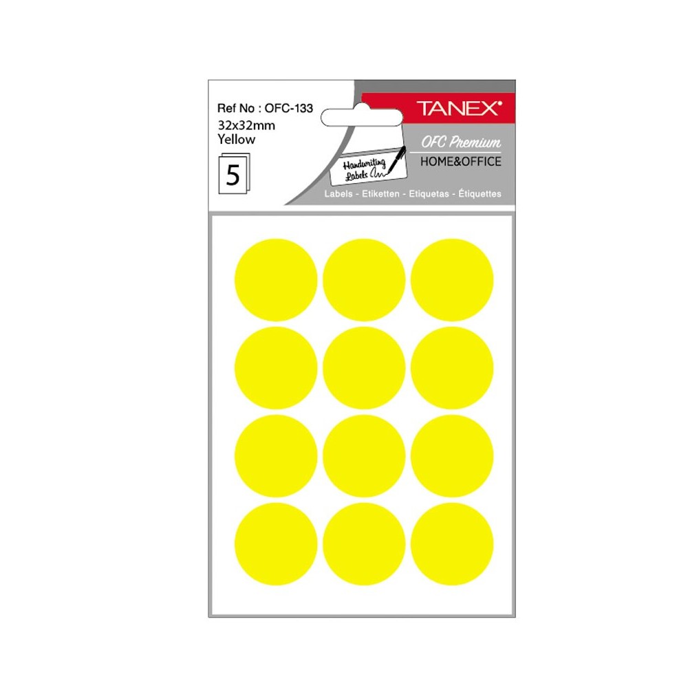 Diametru eticheta: 32 mm. Culoare: galben. Ambalare: 60 etichete/set (5 folii x 12 etichete/folie).