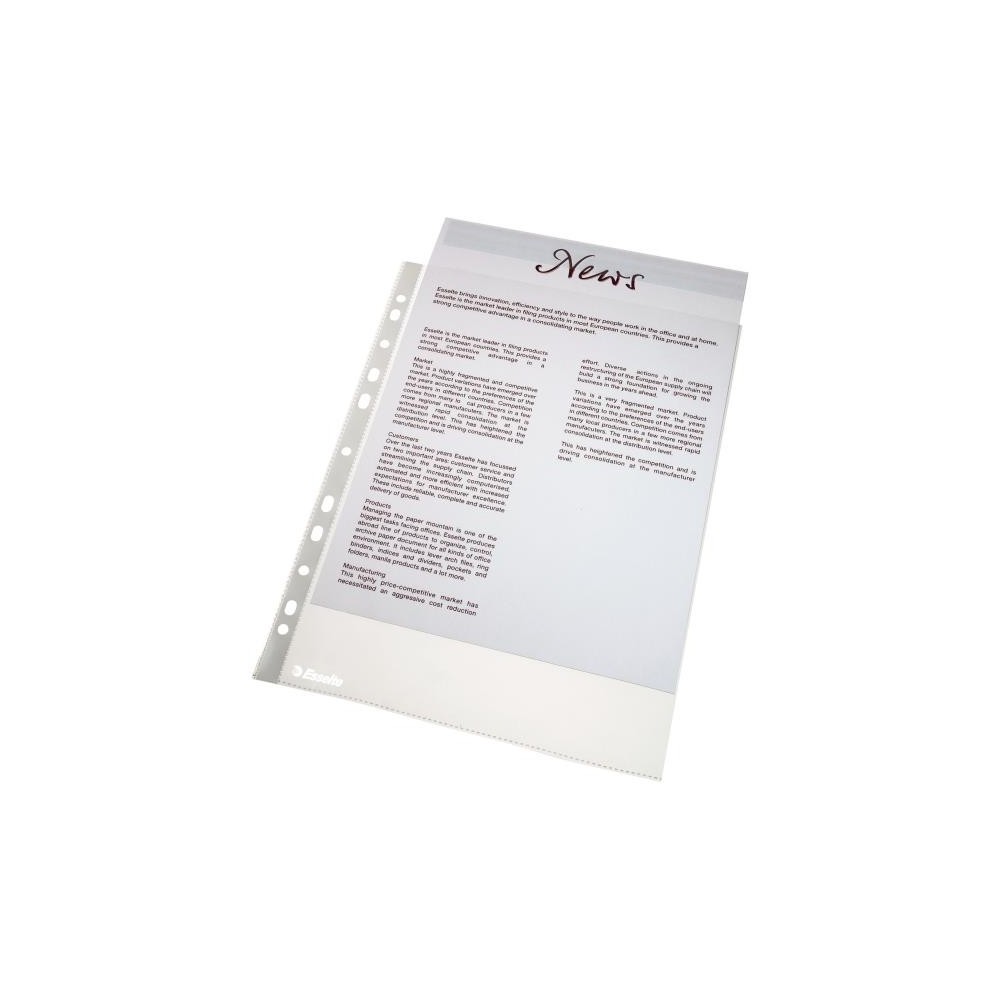 Grosime: 105 microni Deschidere Superioara si lateral dreapta (partial) 11 perforatii pentru arhivare in biblioraft si caiet mecanic Format A4 Dimensiuni: 234 x 1 x 307mm