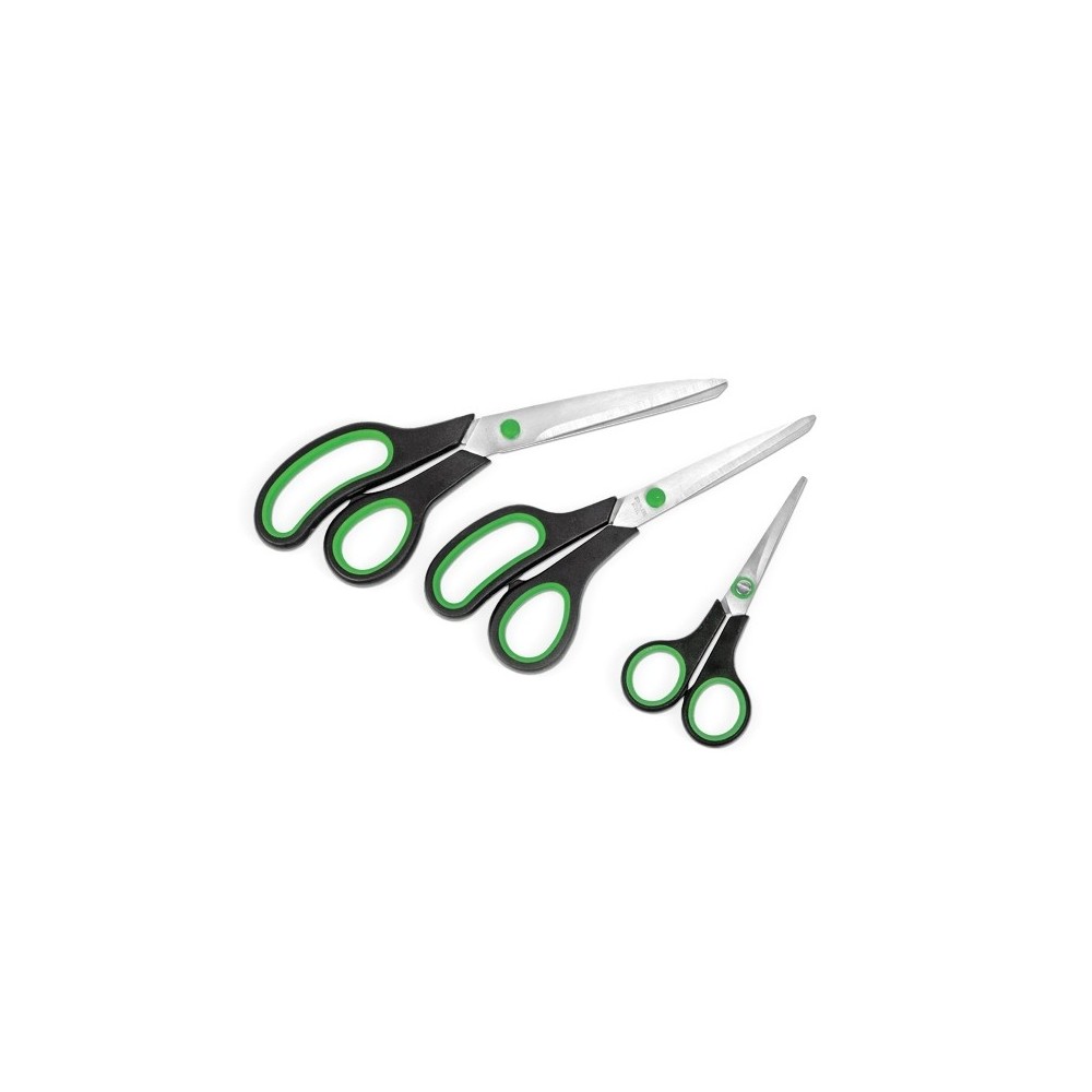 Foarfeca de birou realizata din otel inoxidabil rezistent la coroziune. Foarfeca poate fi utilizata pentru a taia hartie, carton, sfoara sau alte materiale. Foarfeca este prevazuta cu lame ascutite si varfuri rotunjite. Manerul ergonomic din plastic cuprinde si portiuni cauciucate pentru o utilizare confortabila si sigura.