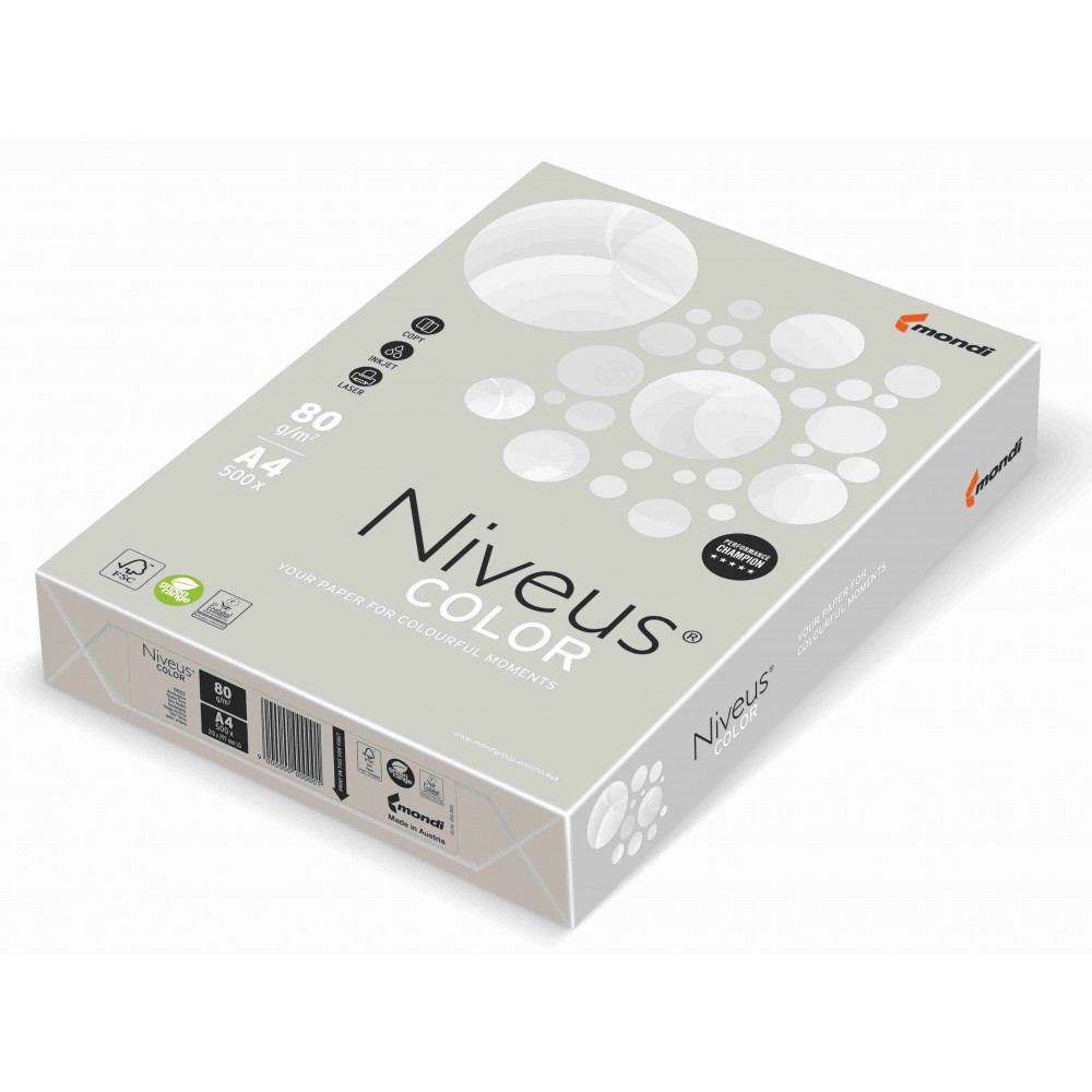 Hartie colorata A4, gri scoica pal, 80g/mp, 500 coli/top, OG52, NIVEUS