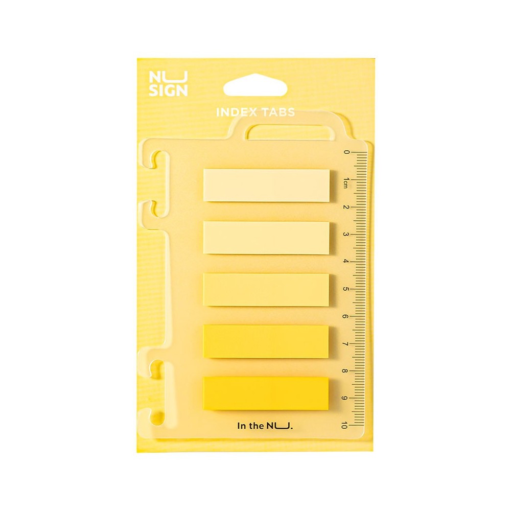 Index adeziv din plastic 5 nuante de galben. Indexul este prevazut cu o rigla transparenta. Util pentru subliniere, indexare, etichetare, etc. Dimensiune: 12 x 44 mm. 5 x 20 file/nuanta.