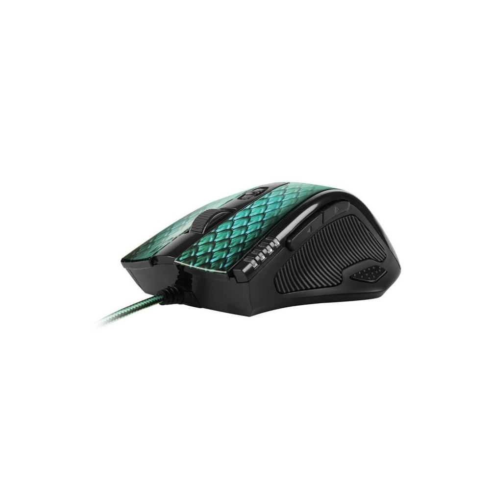 Drakonia este un mouse ergonomic, care se concentreaza pe stabilitate si control. Toate butoanele sunt programabile liber prin software-ul de configurare inclus. Sub suprafata lucioasa cu imprimare de dragon, opereaza un senzor laser Avago 9500, care suporta pana la 5000 DPI.