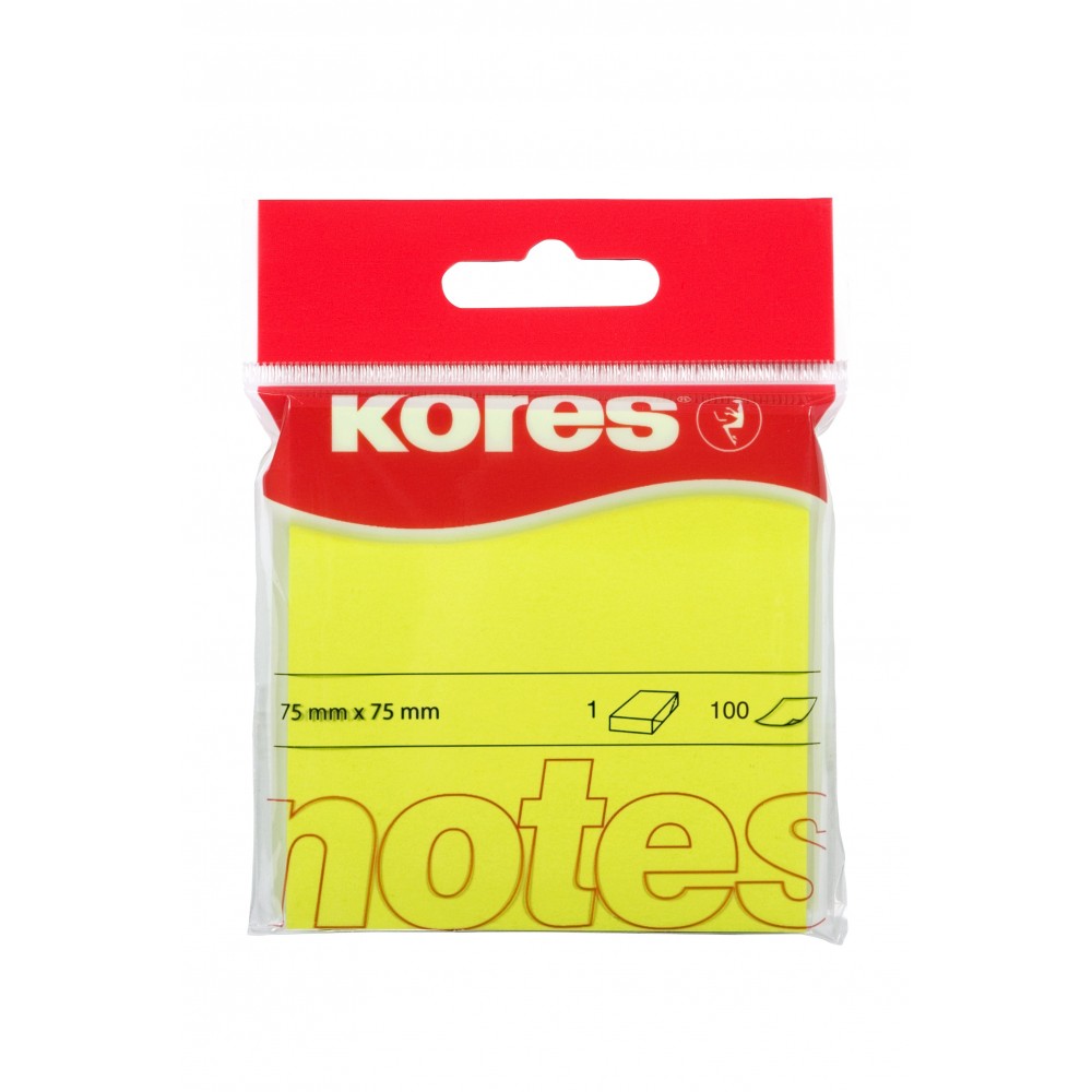 Notes adeziv 75x75 mm, galben neon, 100 file, KORES