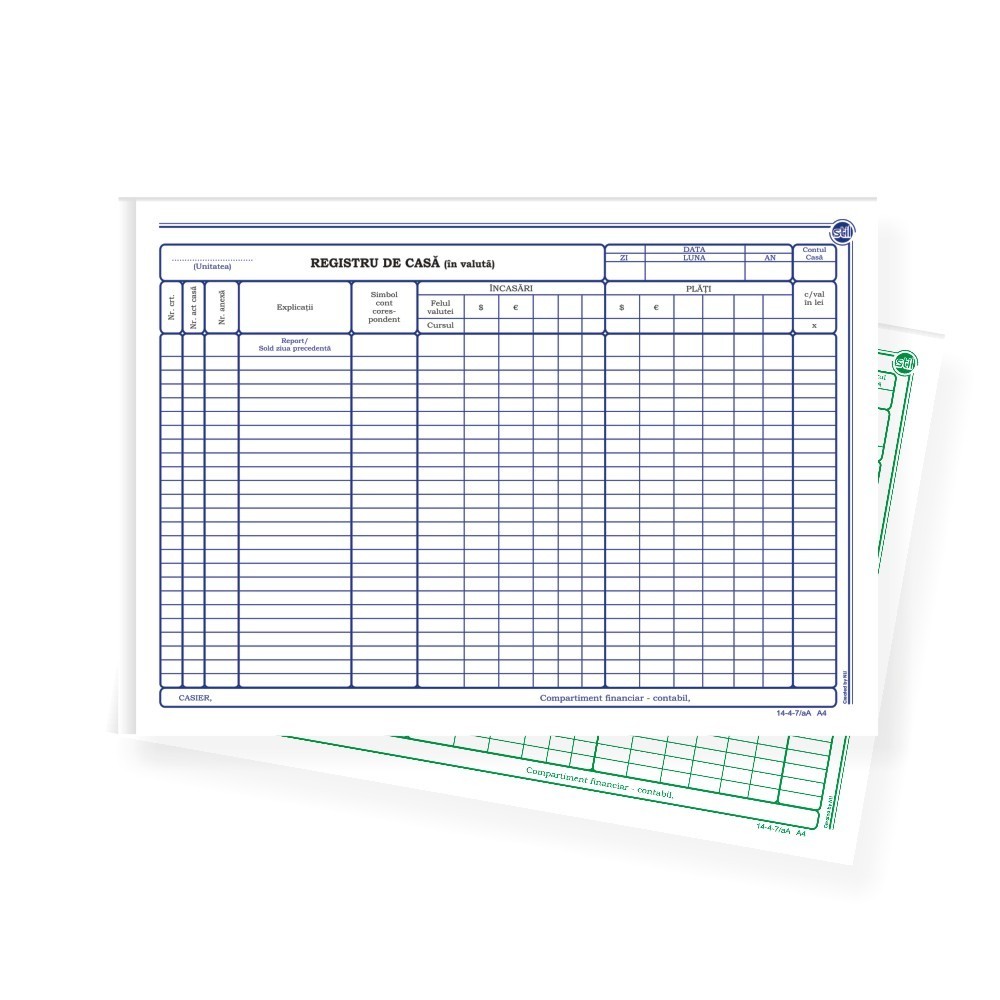 Registru casa valuta, autocopiativ, A4, 2 exemplare, 50 seturi/carnet