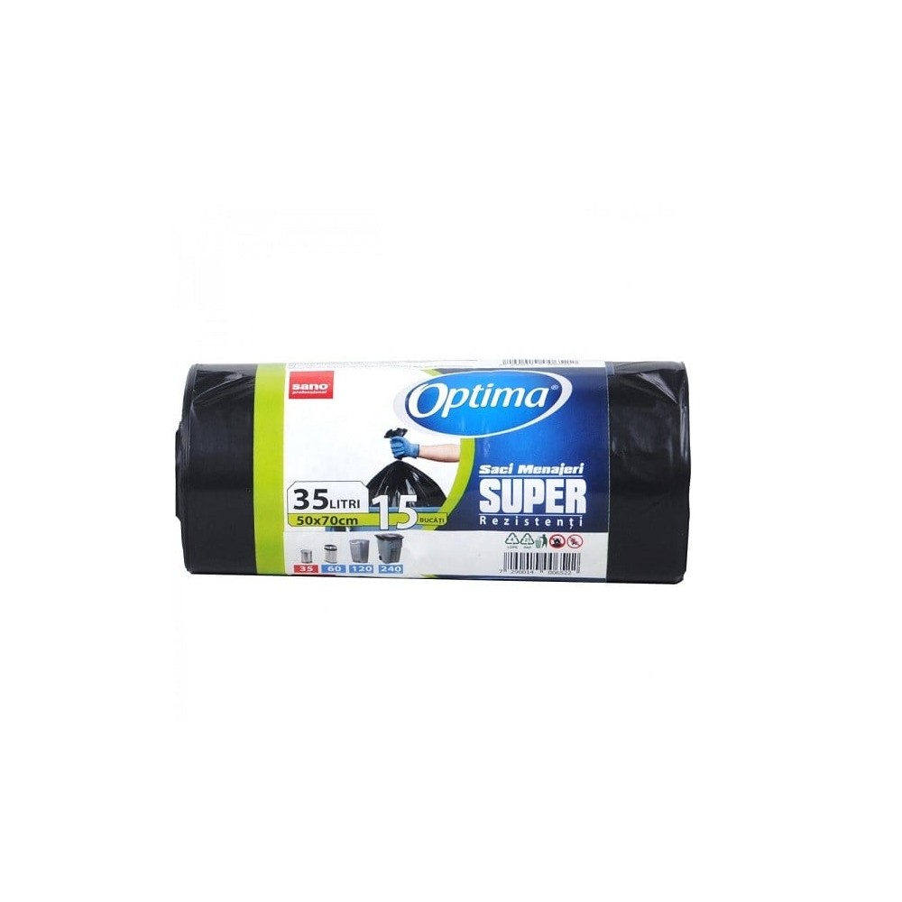 Saci gunoi menajer super rezistenti, SANO Professional Optima, 35 L, 15 buc/rola, negru