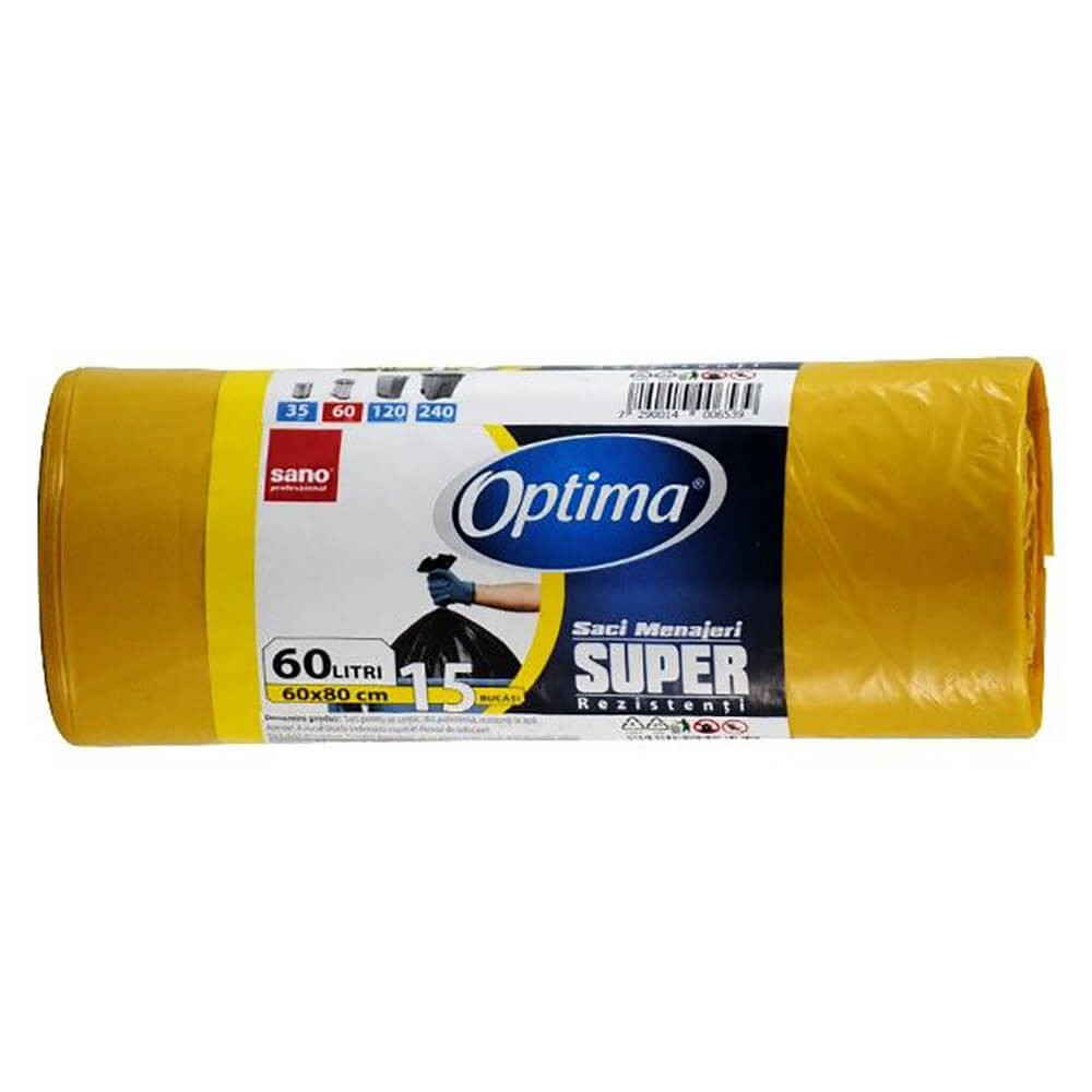 Saci gunoi menajer super rezistenti, SANO Professional Optima, 60 L, 15 buc/rola, galben