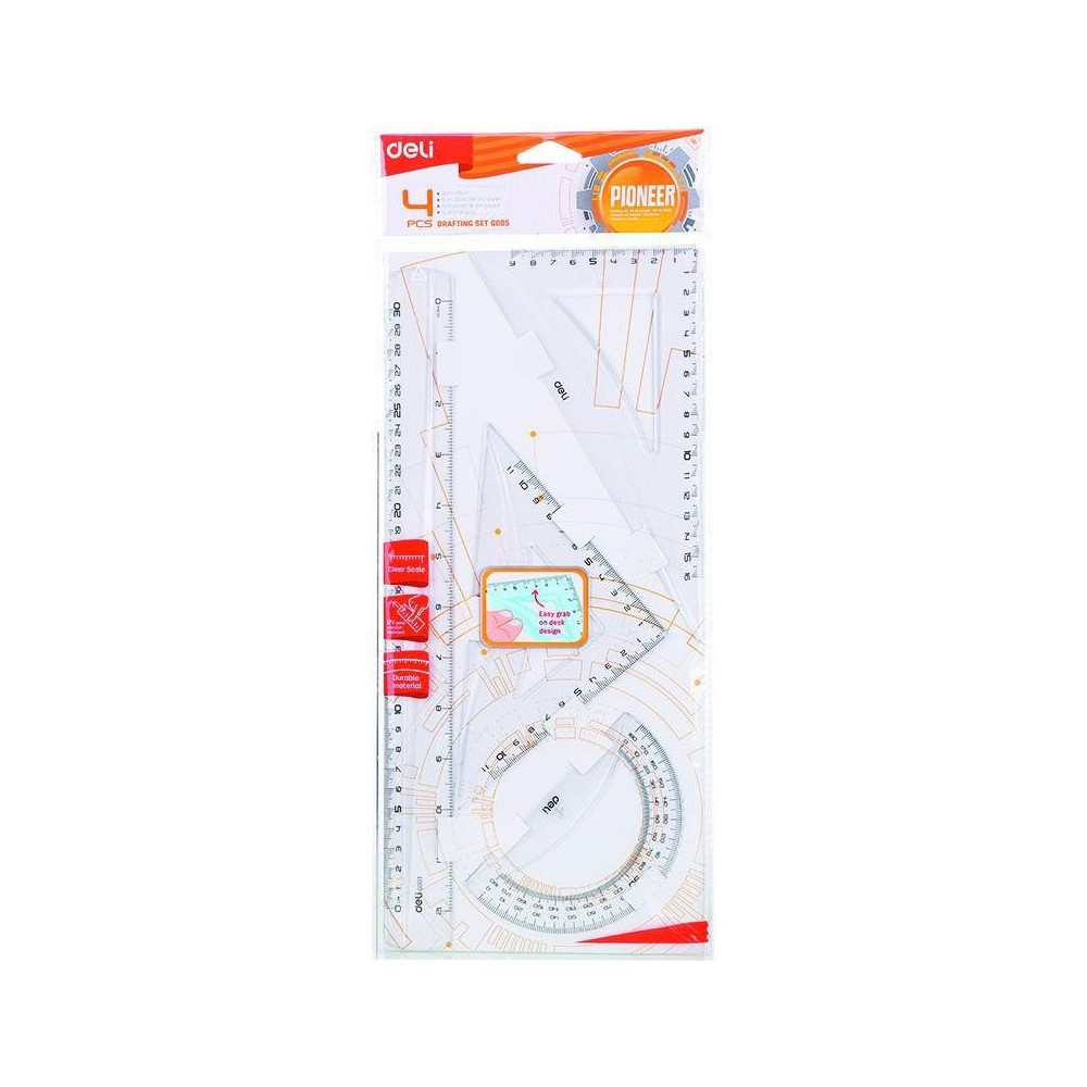 Adauga la Favorite Set geometrie 4 piese mari, color semitransparent, Deli Material rezistent la zgarieturi. Set geometrie 4 piese mari, color semitransparent, Deli 5,08 RON Adauga in Cos