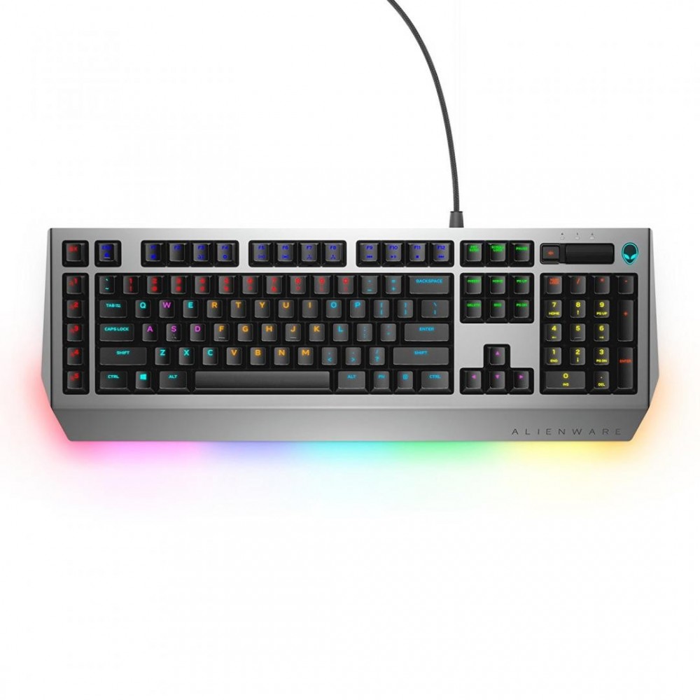 Alienware Pro Gaming Tastatura AW768 cu fir Tastatura Iconic Alienware design with AlienFX TM 16.8 million RGB 13 solar-based lighting 256KB Integrated Memory Bouncing time:> 5 ms (at speed of 0.4 m/s) 1000 Hz polling rate Special Volume Roller Braided Nylon Cable Warranty 1 year