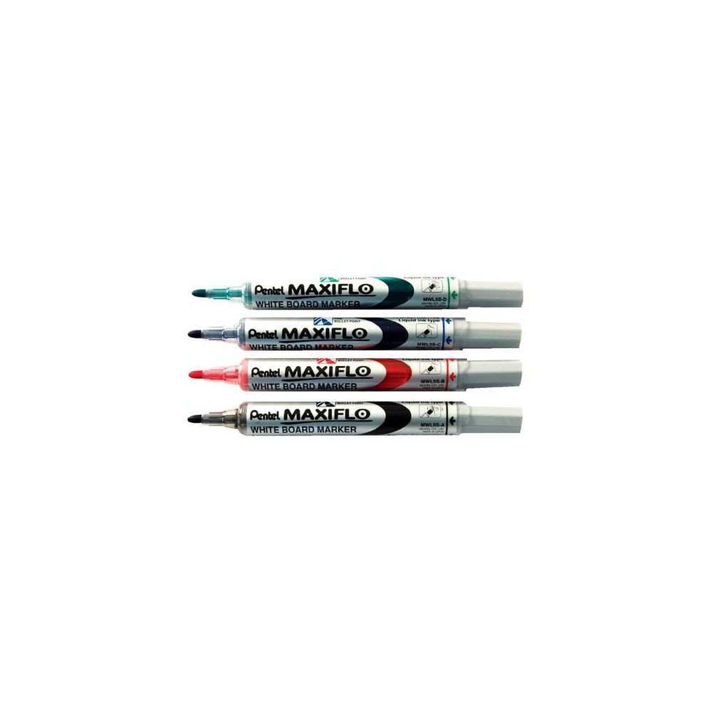 Markerul de tabla Maxiflo de la PENTEL are incorporat un sistem unic de pompare a cernelei care asigura un flux constant de cerneala astfel scrisul nu se estompeaza pana la ultima picatura